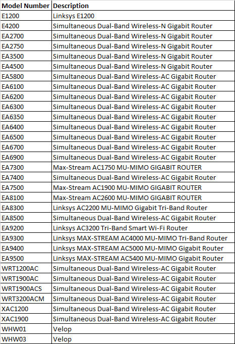 Linksys responded to a vulnerability submission from Bad Packets on May 7th, 2019 regarding a potential sensitive information disclosure flaw: CVE-2014-8244 (which was fixed in 2014). We quickly tested the router models flagged by Bad Packets using the latest publicly available firmware (with default settings) and have not been able to reproduce CVE-2014-8244; meaning that it is not possible for a remote attacker to retrieve sensitive information via this technique. JNAP commands are only accessible to users connected to the router’s local network. We believe that the examples provided by Bad Packets are routers that are either using older versions of firmware or have manually disabled their firewalls. Customers are highly encouraged to update their routers to the latest available firmware and check their router security settings to ensure the firewall is enabled.
