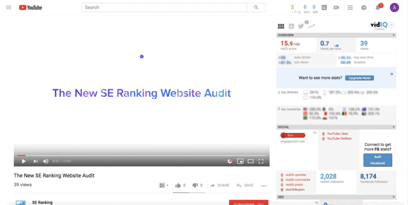 In a nutshell, vidIQ lays out comprehensive information about your channel, videos and competitors, letting you compare up to four channels for free. The data it provides ultimately enables you to make positive changes to your marketing strategy.