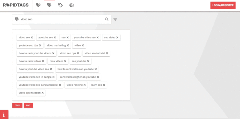 The workflow is pretty straightforward: enter your target query into the search box and the tool will generate relevant tags which you can then copy to YouTube.