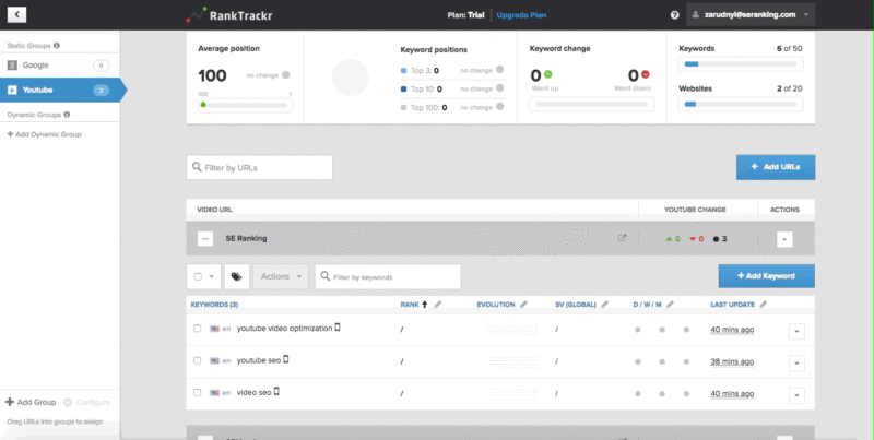 YTRank is a very simple free tool that was designed with one goal in mind: to track the YouTube video ranking position for a specific keyword.