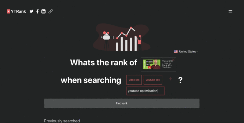 Once you access their website, all you have to do is select the country where you get most of your traffic from, enter the URL of your YouTube video and add up to 6 keywords you want to check positions for.