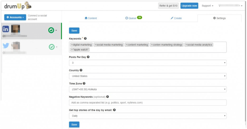 With DrumUp, you can add your social media accounts from Instagram, LinkedIn and Facebook, and communicate with your target social audiences from one easy-to-access platform.