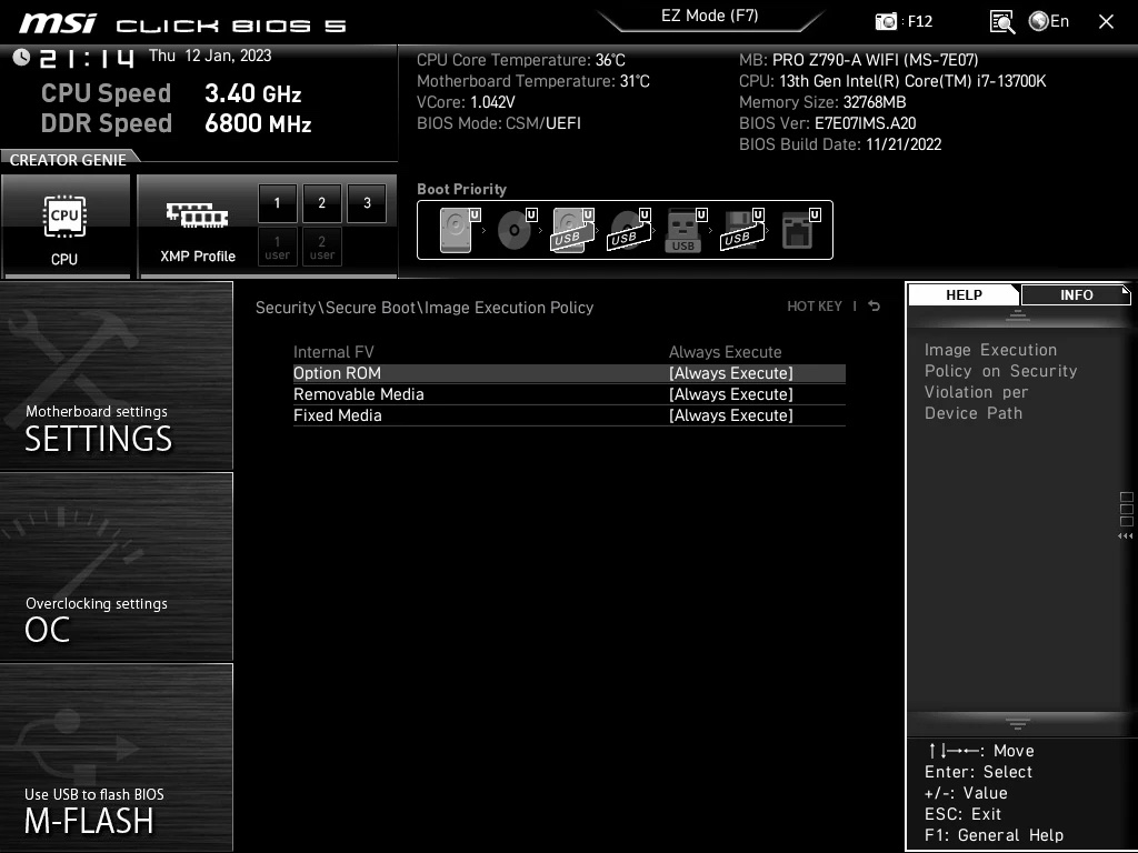 We preemptively set Secure Boot as Enabled and “Always Execute” as the default setting to offer a user-friendly environment that allows multiple end-users flexibility to build their PC systems with thousands (or more) of components that included their built-in option ROM, including OS images, resulting in higher compatibility configurations. For users who are highly concerned about security, they can still set “Image Execution Policy” as “Deny Execute” or other options manually to meet their security needs.