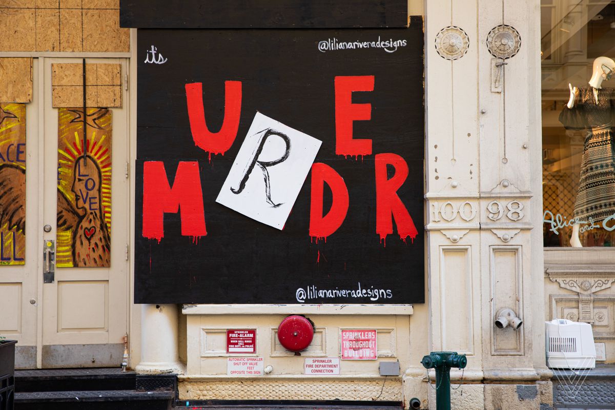 It’s Murder painted by Liliana Rivera “was inspired by the anger I felt towards people trying to justify what is happening to black people, I wanted to simplify that truth – it’s murder. That’s what’s happening, law enforcement doesn’t have the right to murder people” she said over Instagram.