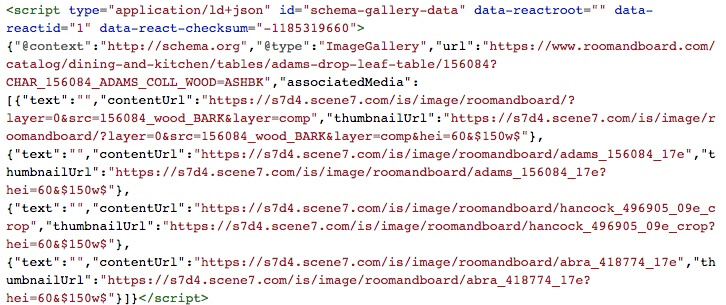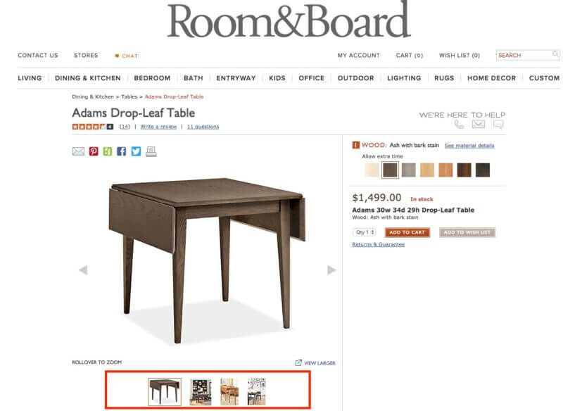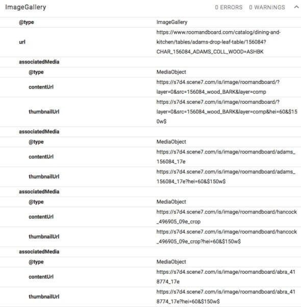 Example: Roomandboard.com utilizes the ImageGallery markup to highlight all images on individual product pages.