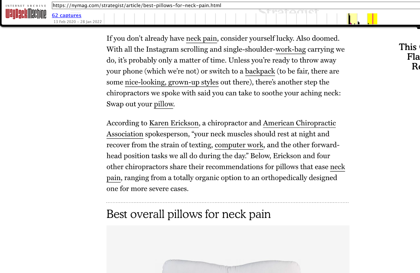 Comparing the page to early 2020, we see that they have changed the content since then. The 2020 version included a quote from a chiropractor from the American Chiropractic Association in the introduction and kept the products above the fold.