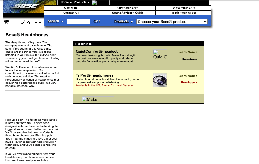 For example, the “Headphones” page from Bose (http://www.bose.com/products/headphones/) from 2003 was never redirected:
