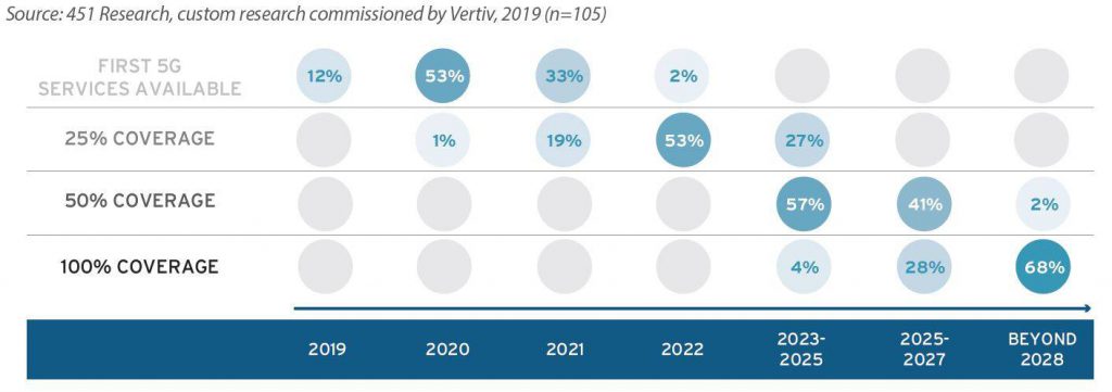 Il 12% degli operatori di telecomunicazioni prevede di implementare servizi 5G nel 2019 e un ulteriore 86% di fornire servizi 5G entro il 2021. Il business sarà incentrato inizialmente sul supporto di servizi dati già esistenti (96%) e su nuovi servizi consumer (36%), secondo le nuove stime diffuse ieri da Vertiv e 451 Research contenute nel Rapporto sullo stato del 5G dal titolo: “Telco Study Reveals Industry Hopes and Fears: From Energy Costs to Edge Computing Transformation“.