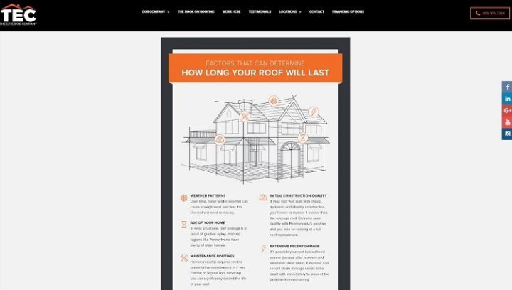 Take a look at the way The Exterior Company uses a graphic to provide information to the user. The user can quickly check the area they are interested in learning more about and then find the matching key on the list to gather more information. This is helpful because the user can enhance their knowledge visually.