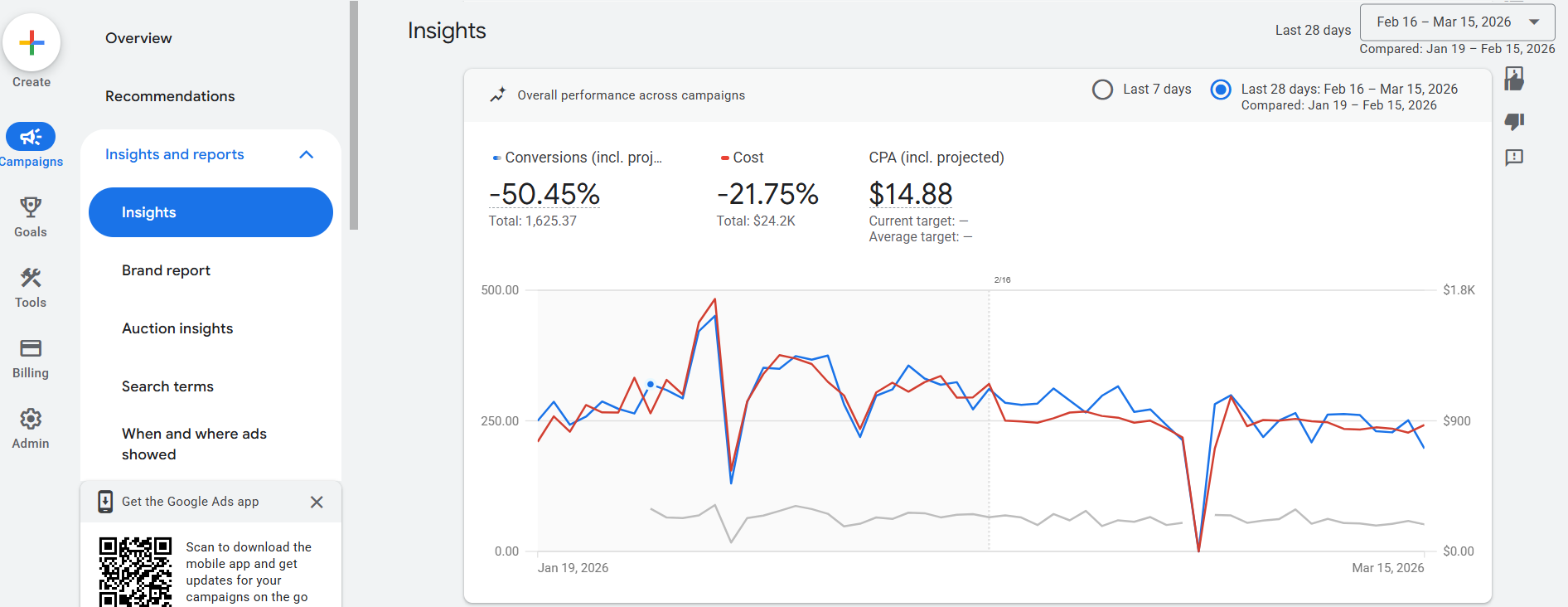 It also drills down to other elements of a campaign, like search term insights or audience insights.