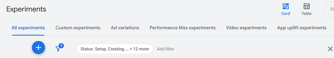 Click on the “All experiments” section, and then click the blue “plus” (+) button to start creating your own custom experiment.