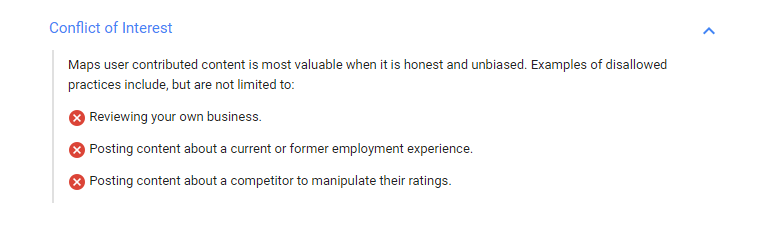 Leaving negative reviews for a current or former employer is against Google’s guidelines. This policy was just recently changed from current employees to both current and former employees.