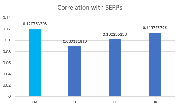 Correlations between DA and SERP rankings