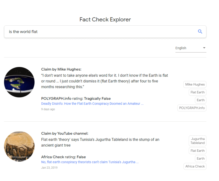 For example, if somebody types a question based on something overheard into the search bar, Google might show the claim and its review right there in the search engine results pages. That result might look something like this: