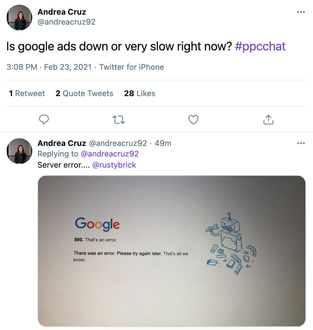 Google Ads saw a short outage yesterday. According to the Status Dashboard, the platform was experiencing issues beginning Monday. Search marketers convened on Twitter to make sure it wasn’t just them. Some were eventually able to log in, but were met with the notification, “You do not have any Google Ads accounts. Would you like to create a new one?” Sure to make any PPC professional’s heart jump to their throat! The issue was resolved just before 4pm yesterday, but it caused quite a few nervous tweets–and some jokingly speculating if it was related to the new Partner Program update.