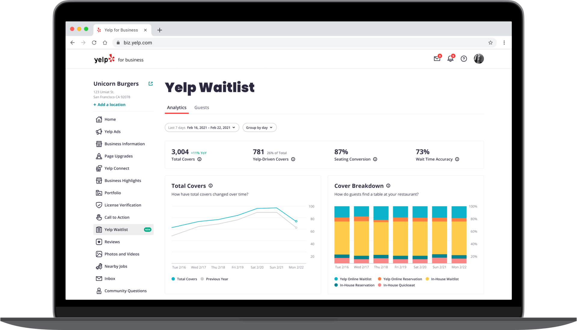 The platform also rolled out enhanced analytics for multi-location restaurants. Metrics include number of customers seated, number of customers seated via Yelp, seating conversion rates (the percentage of Waitlist parties that were eventually seated) and wait time accuracy.