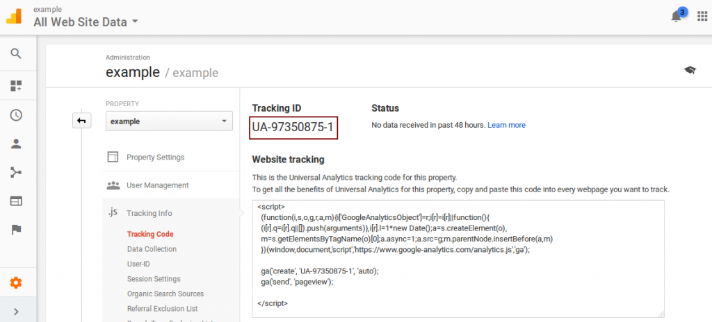 • Once you have your Tracking code, copy it and keep it handy.