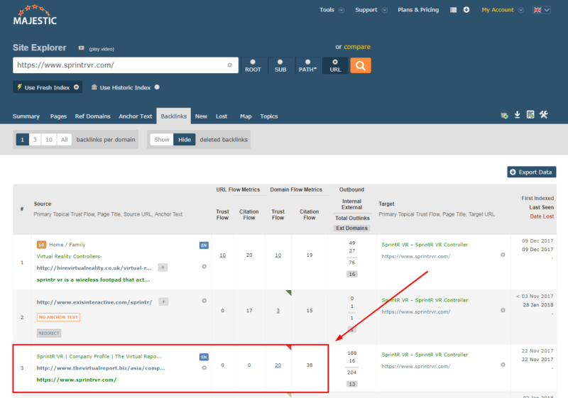 Using a tool like Majestic, I can quickly find sites linking to SprintR, such as TheVirtualReport: