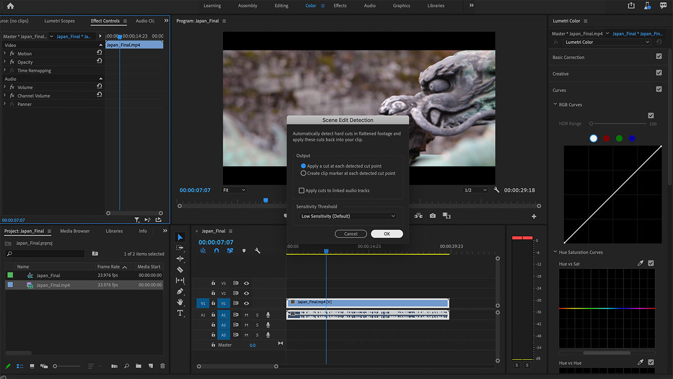 The new tools are based on Adobe’s Sensei machine-learning technology. Premiere Pro will gain the ability to identify cuts in a video and create timelines with cuts or markers from them – ideal if you’ve deleted a project and only have the final output, or are working with archive material.