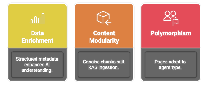 2. Content Modularity: Concise and “chunkable” responses are perfectly suited to Retrieval-Augmented Generation (RAG) ingestion processes utilized by these agents. Content should be designed using autonomous and reusable blocks.