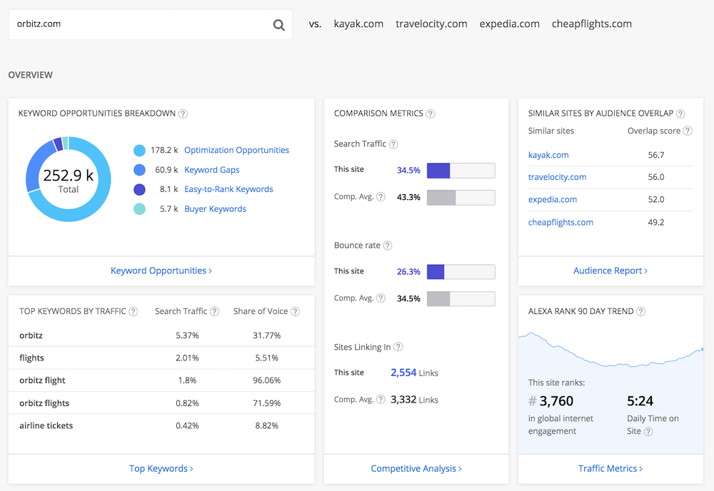 The new Alexa Site Overview service now provides keyword opportunities and audience analysis about any site or its competing sites.