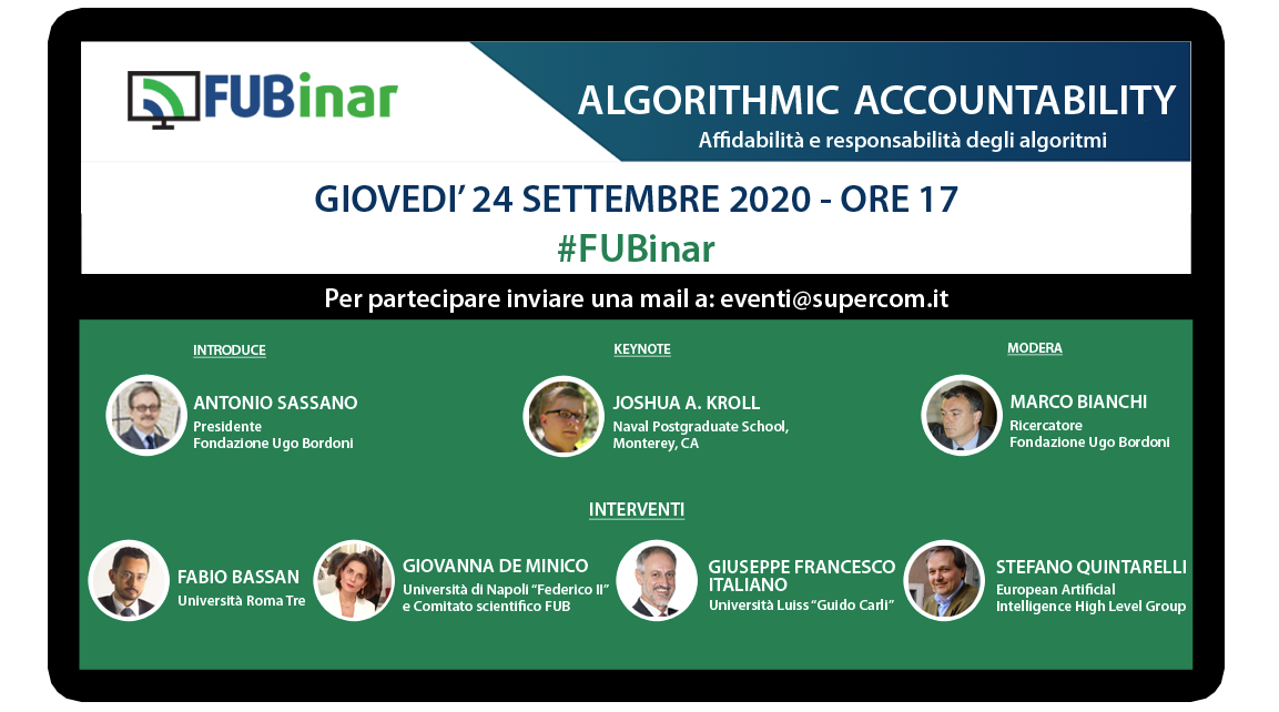 “Algorithmic Accountability”. Il 24 settembre il nuovo webinar della Fub