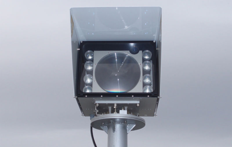 The technology is called “free space optical communication,” and it works exactly the way it sounds: you aim two light beams at each other and communicate through blinking. “Free space” means you’re not using any cable at all and are just communicating through the air over line of sight. Typically this is done with lasers, although for shorter distances it’s possible to use LEDs.
