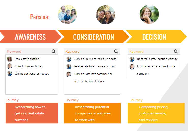 Once you have your personas and ideas of who they are, what they need, and what they are looking for, you’ll want to map out the possible steps they’ll take in their buying journey.