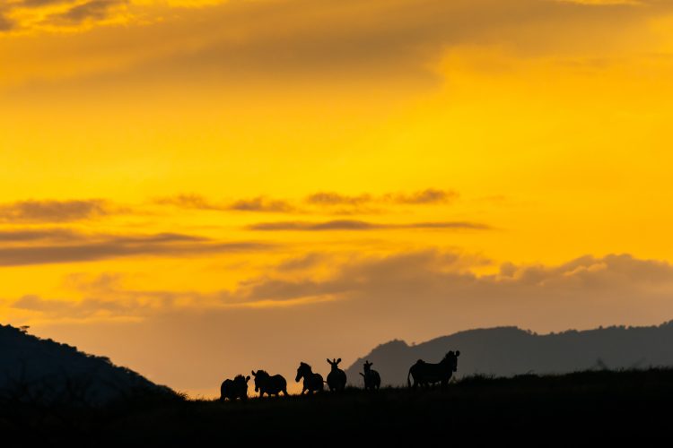 A next challenge was to photograph Grevy’s zebras outside of the Conservancy and away from any tourist visitation sites. The El Barta plains are known to be an important habitat but the GZT has no photos of zebras in that area. A long, hot day of rough road travel took us into this remote area. An early start from camp the next day saw a welcome golden hue in the sky and as we drove I scanned the plains ahead in the subdued light. Spotting a small group of Grevy’s already on the move but silhouetted at the top of a ridge in the distance I urgently banged on the driving cab and we shuddered to a halt. I leapt out with a 100-400mm lens and ran into the scrub to find an angle from where I could manage just a few frames of the zebras silhouetted before they disappeared over the hill. I didn’t nail the unique composition I was excited about when I first saw them but I got close to it!