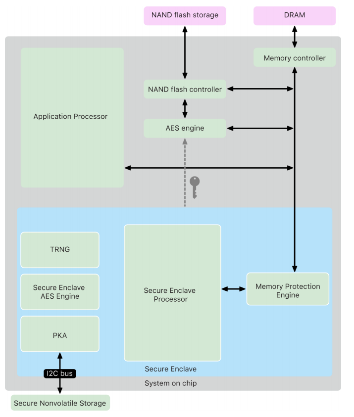 I temi legati alla sicurezza per quanto riguarda l’architettura hardware dei prodotti Apple, snocciolati nella prima parte del report, variano dal coprocessore Secure Enclave, cui è affidata la gestione dell’avvio protetto del sistema, passando per Apple T2 (crittografia dei dati) per arrivare al codice Boot ROM alla base del sistema di sicurezza dei dispositivi iOS.