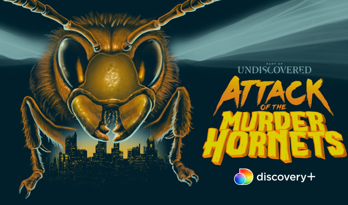 Director Michael Paul Stephenson‘s credits include two documentaries: Best Worst Movie—about his experience co-starring in the 1990 cult comedy/horror film Troll 2—and The American Scream. So when he pitched his idea for a documentary about the murder hornets to Discovery, some of that horror sensibility crept in, including B-movie-inspired artwork showing a gigantic hornet menacing beekeepers and scientists.