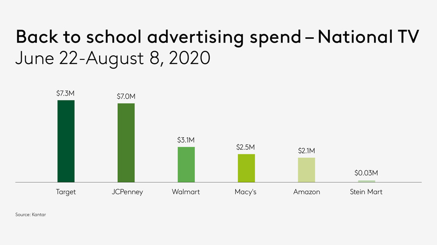 Last year, national back-to-school TV advertising comprised 100 retailers, according to Kantar.