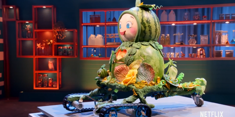 In this eight-episode series, Netflix dumps contestants into a massive lab decked out with everything a hobbyist or a baker could want. On one side, the lab is covered in laser cutters, 3D printers, and jigsaws. Oversized ovens, industrial-grade mixers, and a massive pantry fill out the other side. Each competing team has one established baker and one award-winning engineer, and every episode asks the teams to design and produce some sort of elaborate object that does three things: tastes good, looks good, and fulfills a defined function.