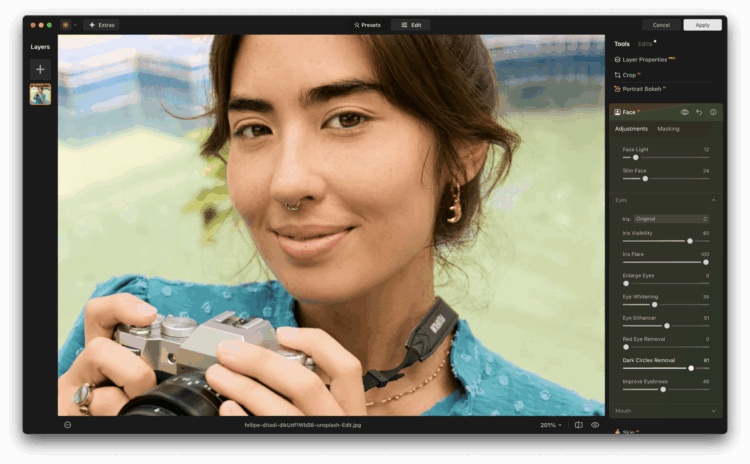Ideal for photographers who specialize in headshots or lifestyle images, these tools smooth skin, reduce blemishes, and enhance eyes and lips without making subjects look plastic or over-edited. The adjustments are subtle and refined.