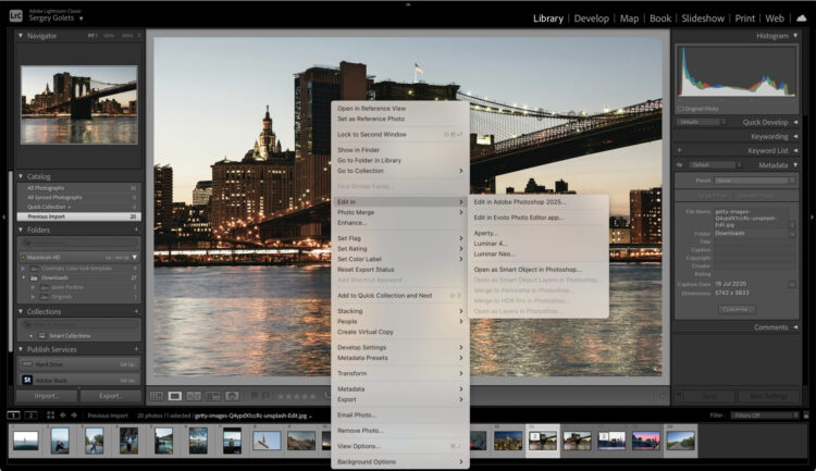Open Lightroom Classic and right-click on an image. Go to “Edit In” and select Luminar Neo. Lightroom will send a TIFF (or another selected format) to Luminar Neo. Make your edits, hit “Apply,” and the finished image will appear back in your Lightroom catalog.