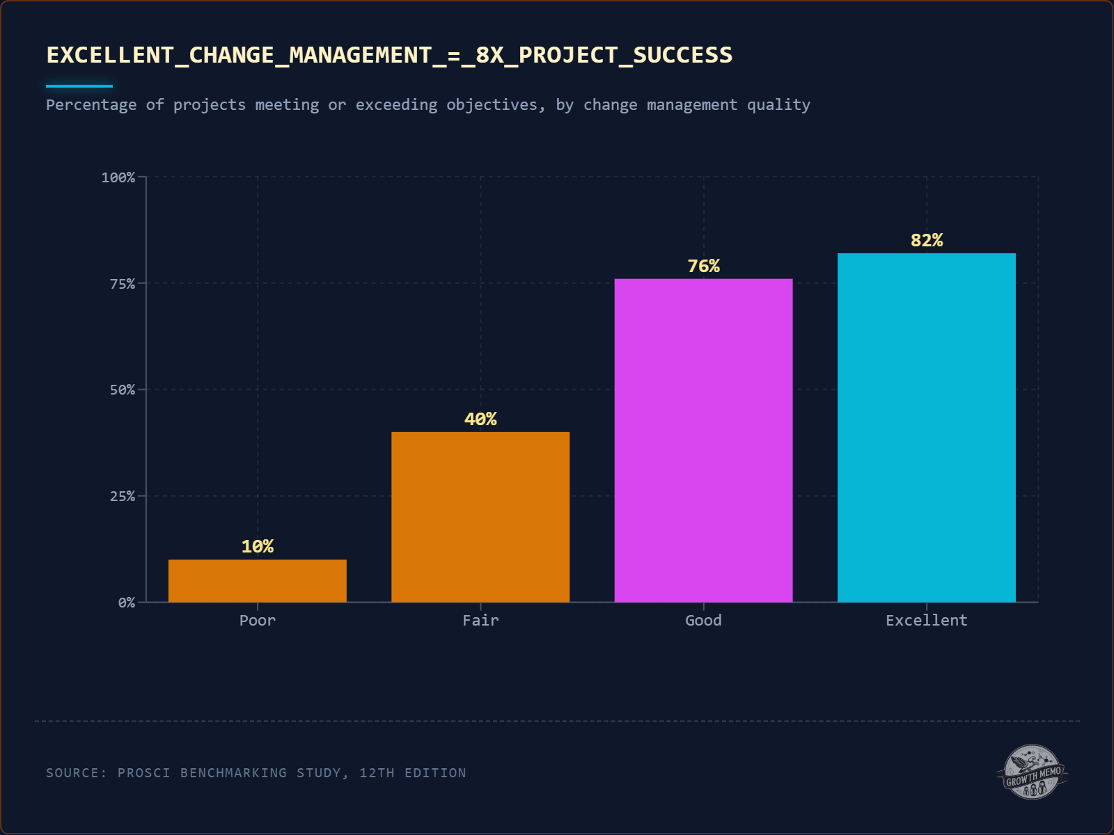 The correlation between the quality of managing a big shift and your project’s success is dramatic: