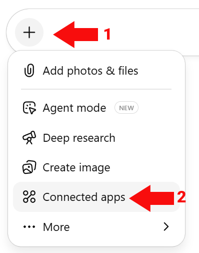 Step 1: Click the + button then “Connected apps” link