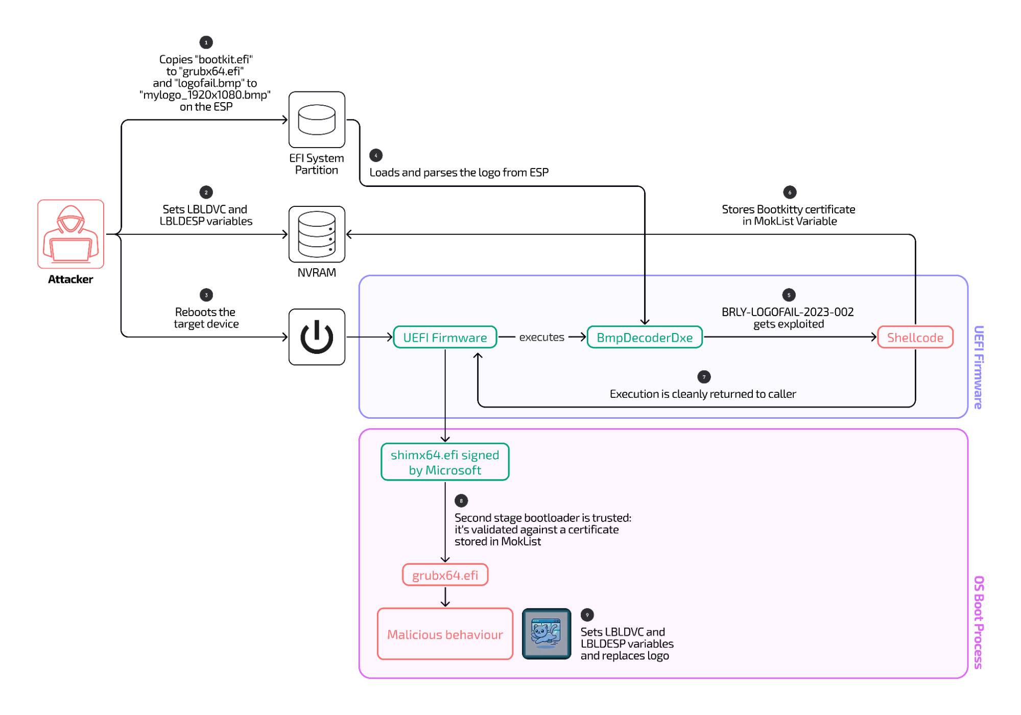 Diagram illustrating the execution flow of the LogoFAIL exploit Binarly found in the wild. Credit: Binarly