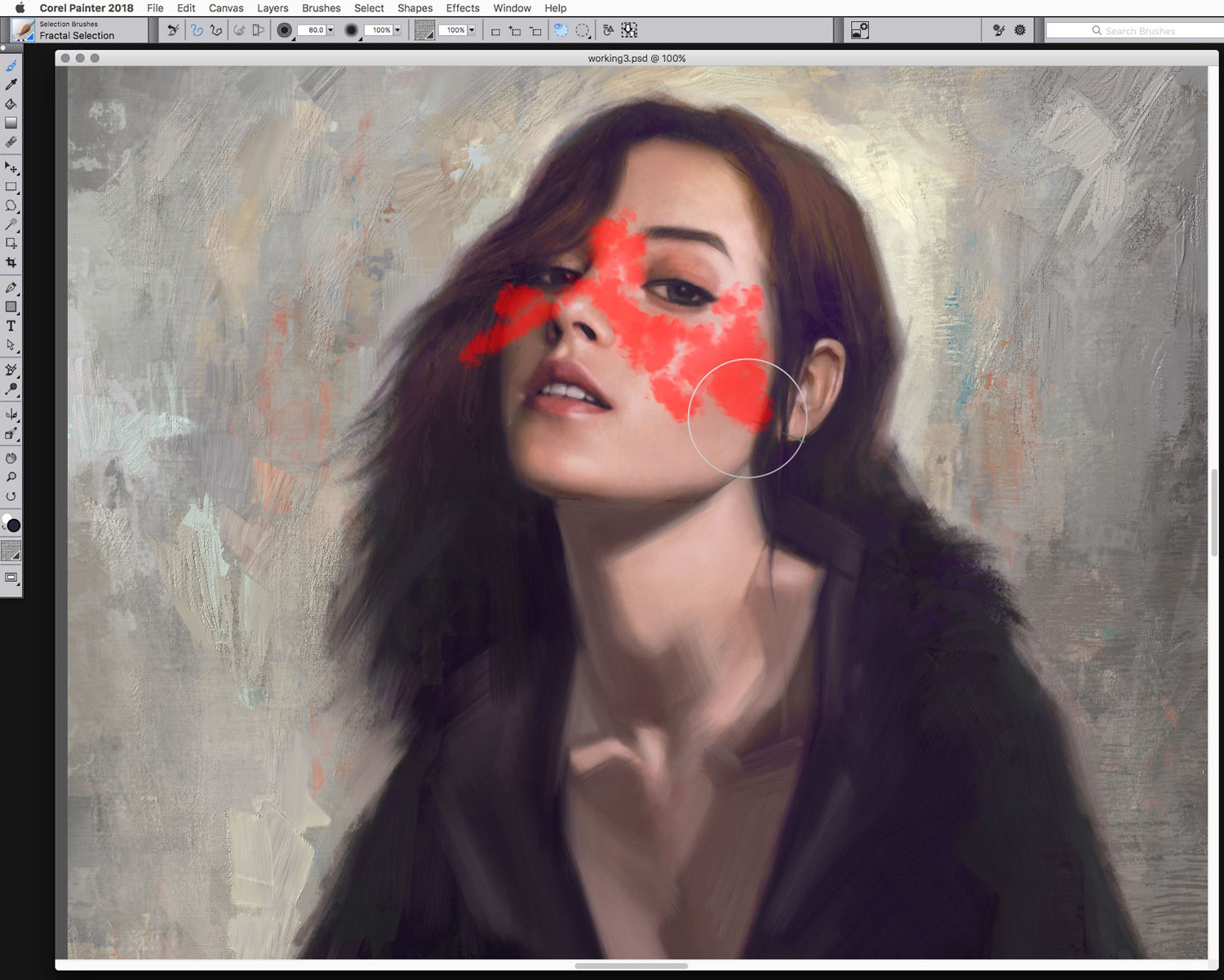Painter’s selection tools have always been a bit lacking. Fortunately there are are a new range of Selection brushes that help break away from the usual Lasso and Marquee way of working to approaches you might be familiar with from Photoshop.