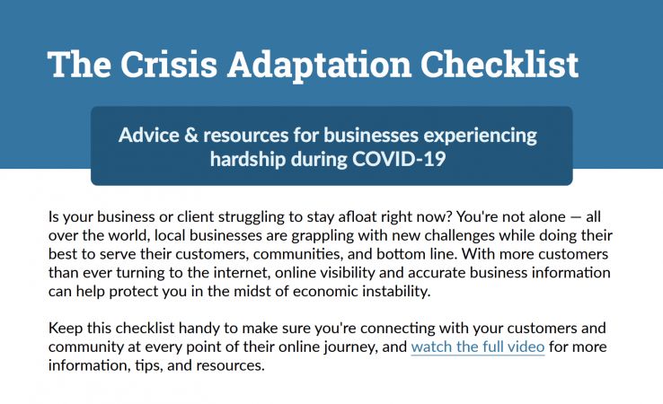 - Changes to hours is so important right now. It’s essential that you have that information readily visible to anyone visiting your website, if this applies to you. All forms of availability, video, curbside, no touch delivery, have that information available.