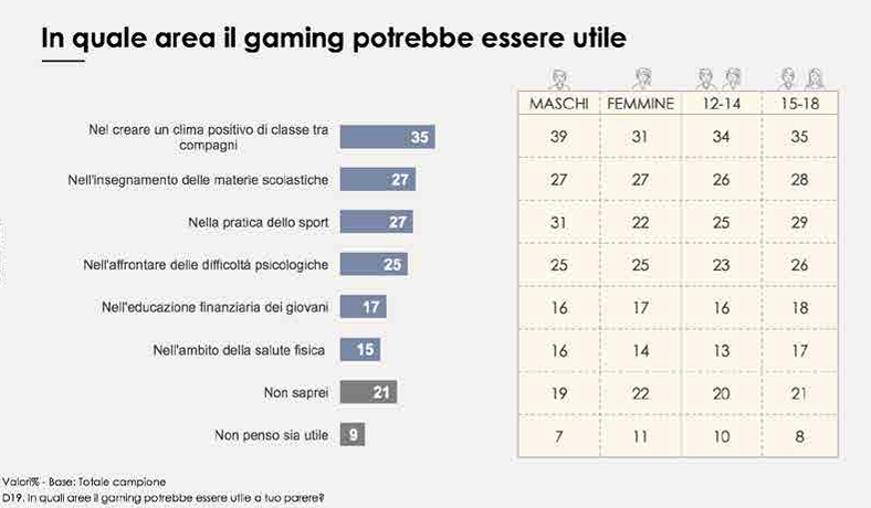 Il report di Telefono Azzurro, dopo aver riconosciuto ai videogiochi, sempre più sofisticati, anche un ruolo educativo – migliorando ad esempio le abilità visivo-spaziali, l’attenzione e la memoria, oltre alla possibilità di accrescere la «capacità di comunicare in modo chiaro, di relazionarsi in maniera efficace e stimolare i processi empatici» – ricorda anche quali sono i rischi legati a questo settore. Una parte di questi pericoli deriva dall’elemento comunitario sempre più forte dei giochi preferiti dai più giovani: non più esperienze solitarie ma attività di gruppo, anche con giocatori che arrivano da ogni parte del mondo (come accade per i MOBA e per i MMORPG). Un’esperienza che può aiutare ad aprire la mente e a mettersi a confronto con culture diverse da quella d’origine, ma che allo stesso tempo aumenta le possibilità che i giovani giocatori vengano a contatto con minacce e insulti, derivandone un senso di incapacità e inadeguatezza soprattutto nei giochi competitivi, senza contare la possibilità di venire a contatto con contenuti non adatti. Il cyberbullismo trova spesso proprio nel gaming online attraverso lo smartphone uno dei suoi veicoli più pericolosi e diffusi.