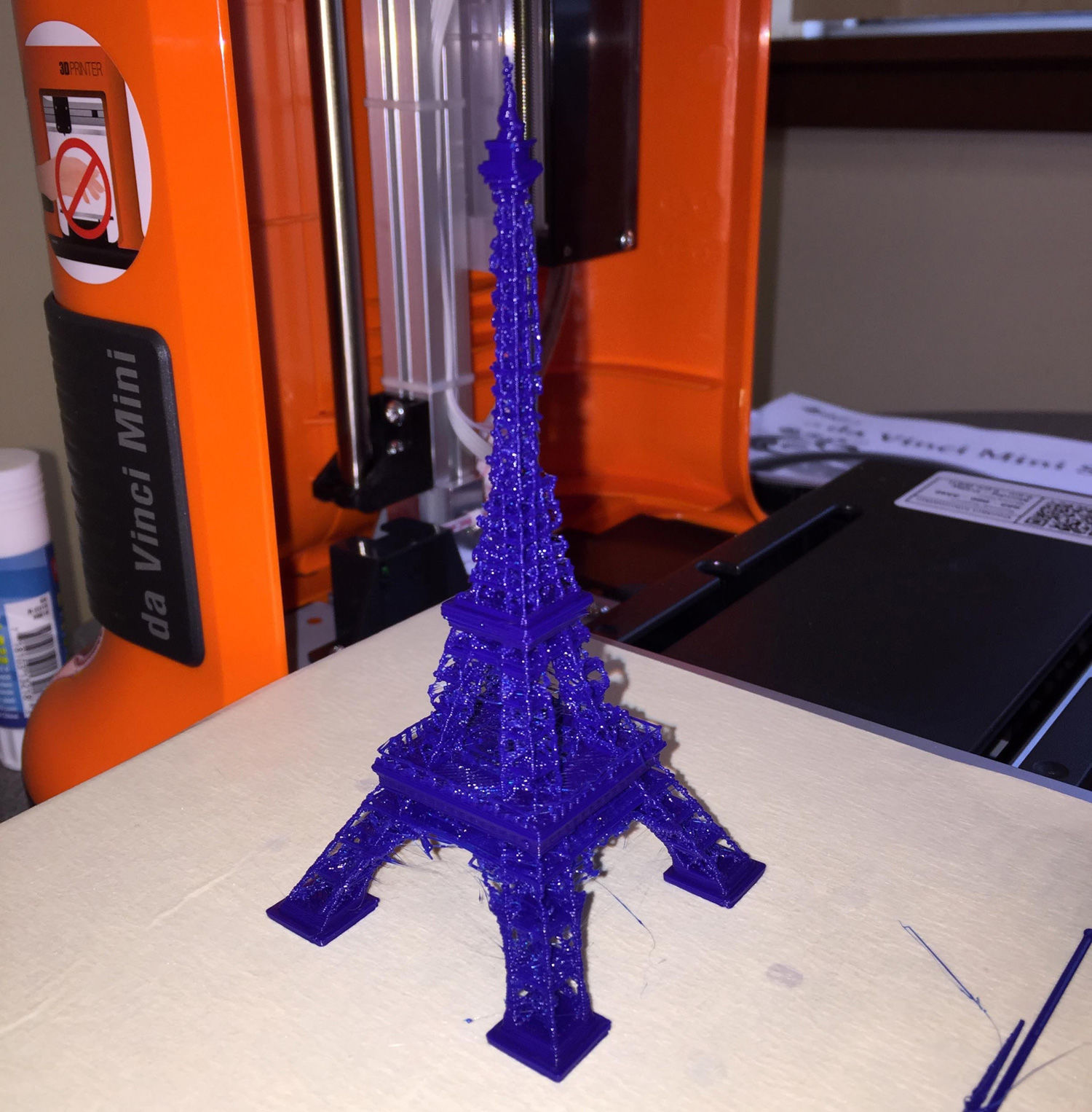 By comparison, XYZprinting’s da Vinci Junior failed rather spectacularly in trying to print the Eiffel Tower; its result was a mess of filament barely resembling the precise virtual model it from which it printed.