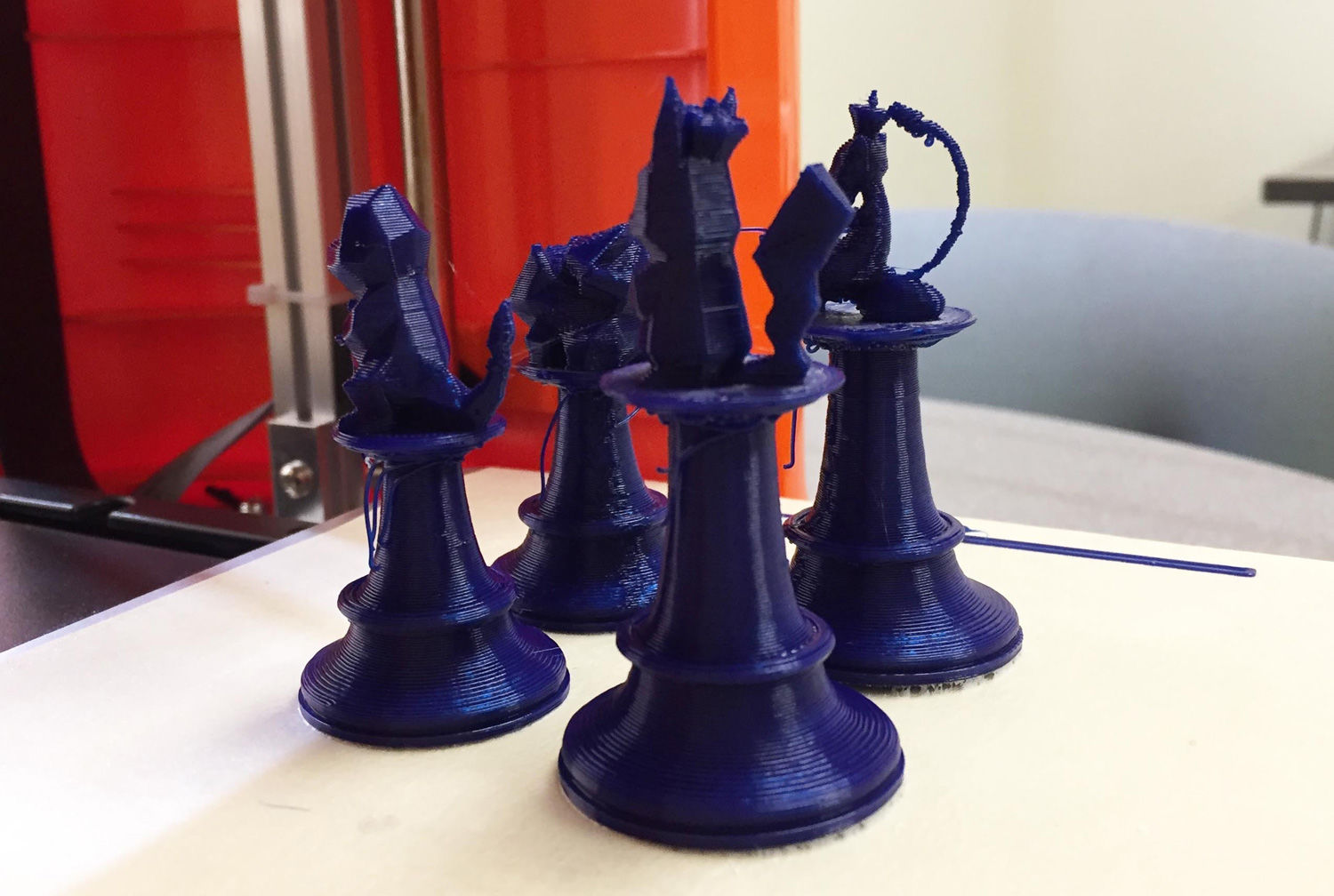 Another challenging test of a 3D printer is making multiple objects simultaneously. I printed four Pokemon-style chess pieces on the Mini, which took three hours, two minutes.