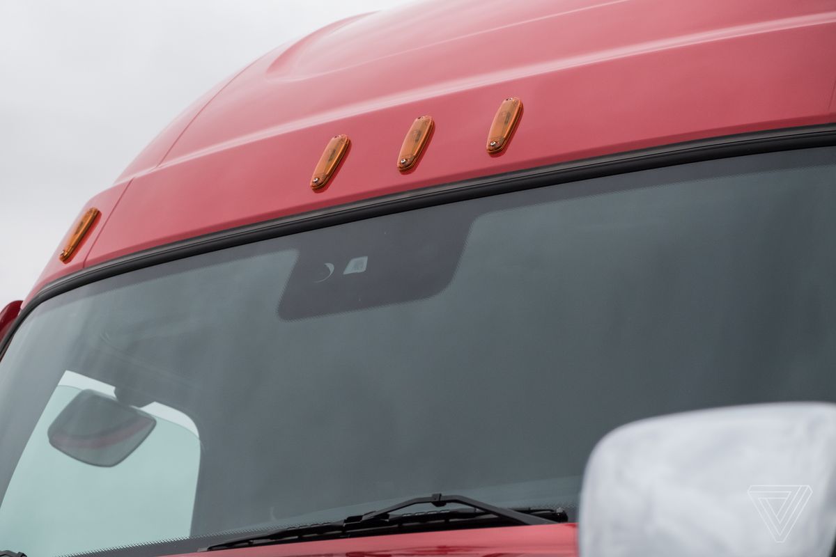 But the new Cascadia is doing this with a limited set of sensors. There’s a forward-facing camera, a forward-facing radar, a second radar sensor on the right side of the truck. That package pales in comparison to the dozens of cameras, ultrasonic sensors, and radars you’d find powering Autopilot, let alone the Tesla Semi, which is supposed to have a beefed-up version of this same sensor suite.