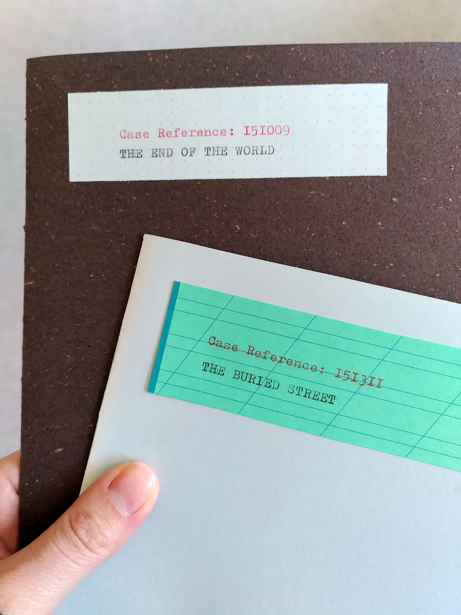 The original vision for Marmont Road was to document each mystery with a physical case file, so I spent a lovely while sourcing paper, folders, envelopes, clips and all manner of ‘essential’ stationery items. The idea for the website was then to be a sort of extension of the physical files. The website has now become the main platform, but we do have two partly finished physical case files.