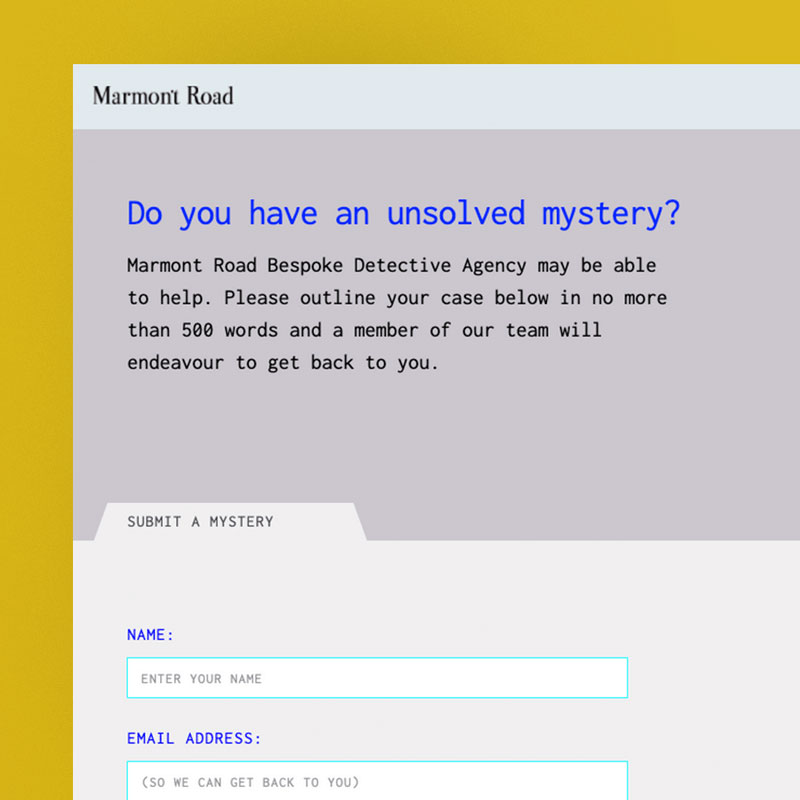 Design Case Study: Marmont Road Bespoke Detective Agency by Lizzie Curtis