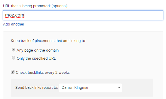 When adding your “New Project,” be sure to include the domain URL for the site you’re building links to, as shown below. BuzzStream will then go through and crawl your list of URLs and flag any that are already linking to you, so you can filter them out.