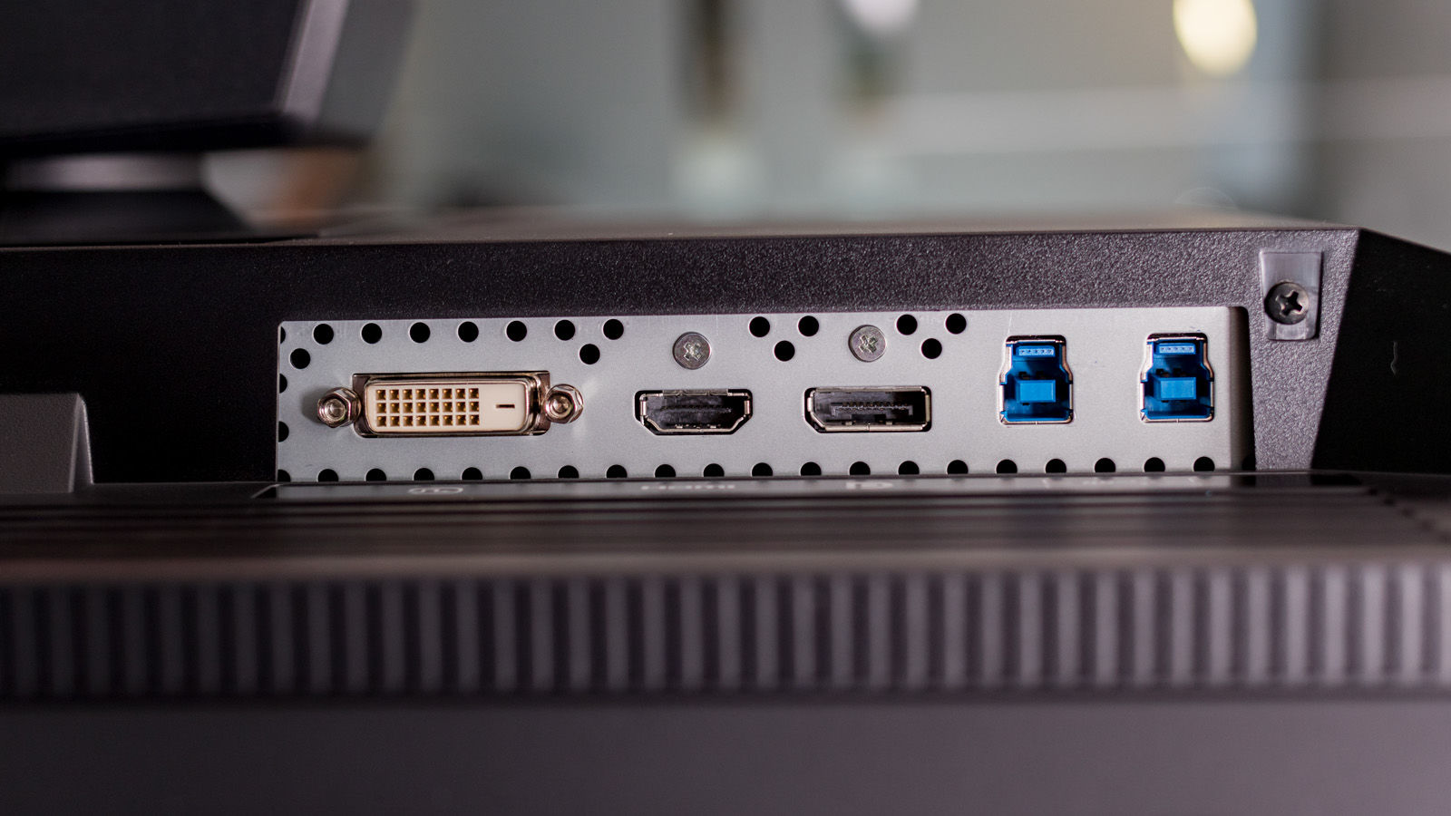 There’s a supplement of four leads in the box: a DVI dual-link cable, a DisplayPort cable, and USB 3.0 cord and power lead. You also get mounting screws in case you want to attach the display elsewhere. To detach your monitor from the stand requires an easy push of a button at the back of the stand.