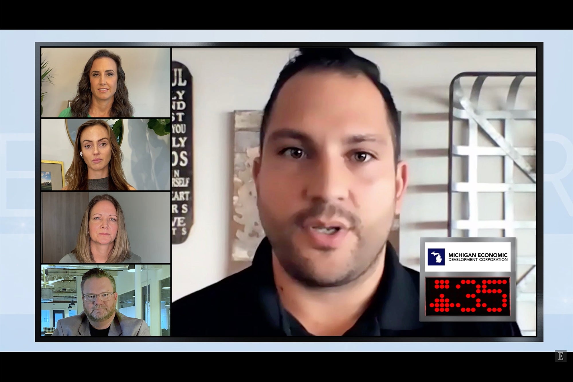 Peter Goldberg, founder of PLG Ventures, opens this episode of Elevator Pitch by introducing our four investors: Kim Perell, serial entrepreneur; Ross O’Brien, managing partner of Entrepreneur Select; Amanda Groves, partner of Plus Capital; and Patti Glaza, managing director of Invest Detroit Ventures. Each of the four judges are working from their homes or offices, watching the pitches over livestream.