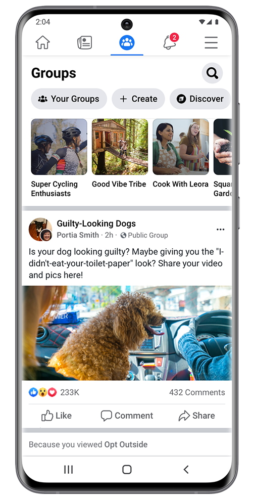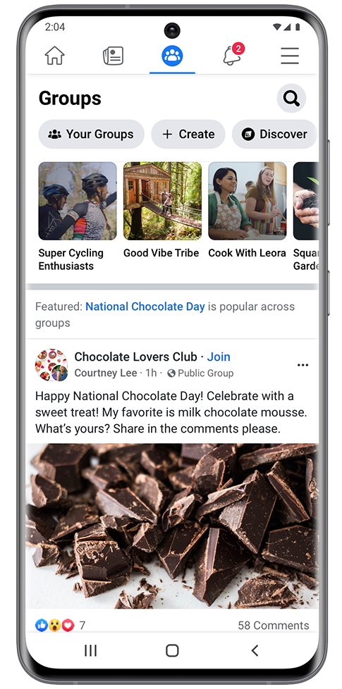 The groups tab will display posts from public groups that are related to people’s interests, as well as popular posts from public groups.